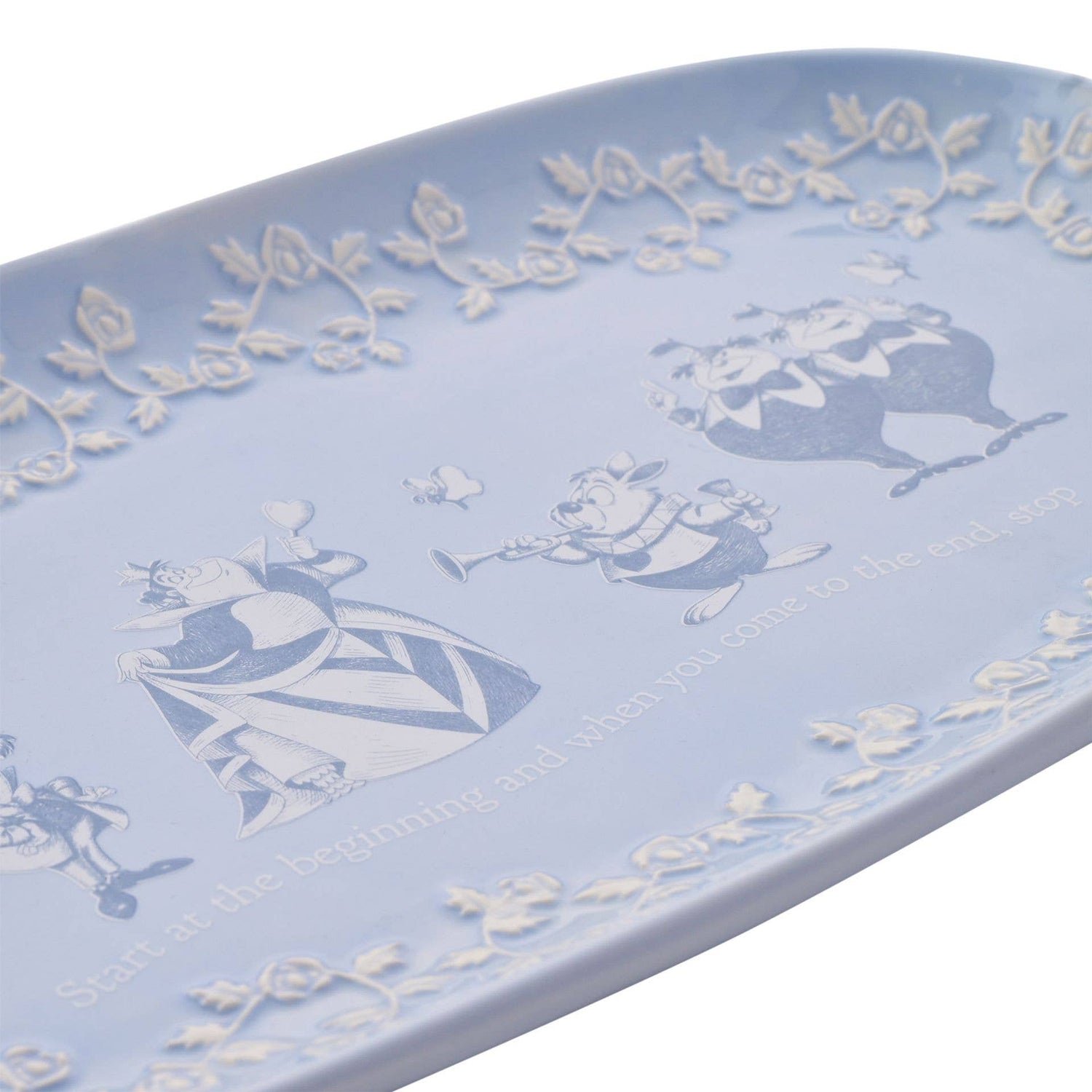 Invitez la magie de l’univers d’Alice au Pays des Merveilles dans votre maison avec ce plateau en céramique émaillée bleu clair. Orné de personnages emblématiques comme Alice, le Chapelier Fou, la Reine de Cœur ou encore Tweedle Dee & Tweedle Dum, il présente au centre la citation culte : “Start at the beginning and when you come to the end, stop” (Commencez par le début et quand vous arrivez à la fin, arrêtez-vous).