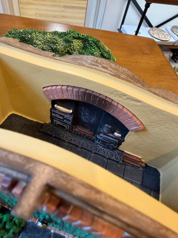 Conçue en résine moulée et peinte à la main, elle révèle des couleurs riches et de nombreux détails sculptés : feuillages, fleurs, textures de pierre et boiseries donnent vie à cette pièce immersive.