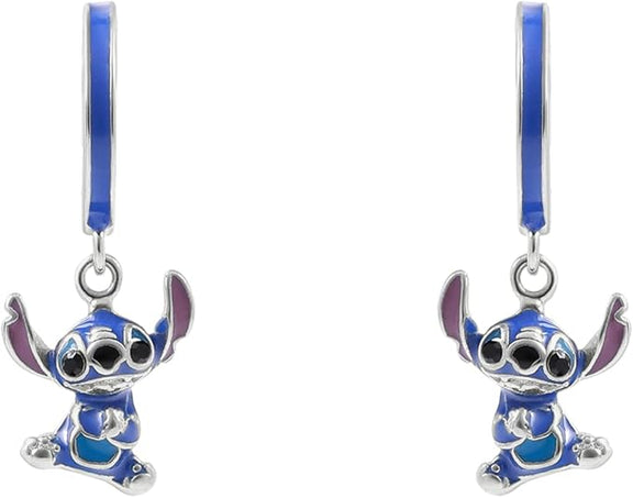 Boucles d’Oreilles Disney Stitch Bleues en Argent Massif – Demi-Créoles Émaillées