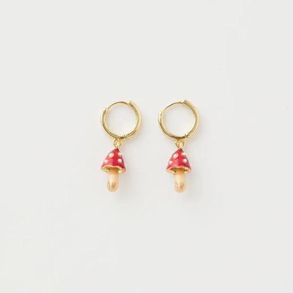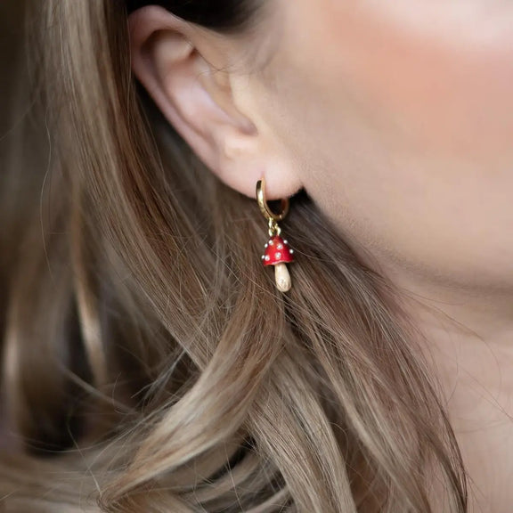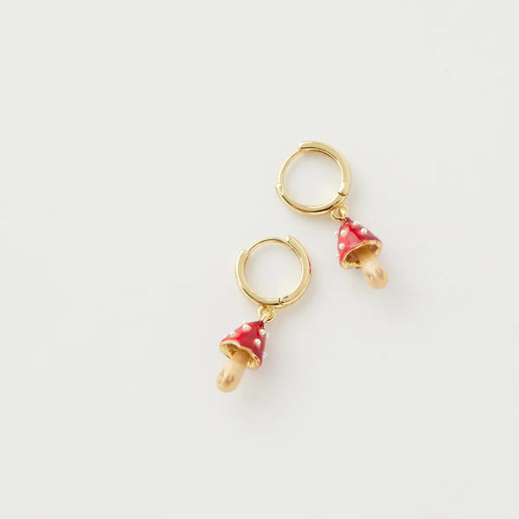 Plongez dans l'univers enchanteur de la forêt avec ces adorables boucles d'oreilles Fable England , en forme de petits champignons rouges inspirés des contes de fées. Chaque détail est soigneusement travaillé, du chapeau rouge à pois blancs jusqu'à la tige beige délicatement arrondie.