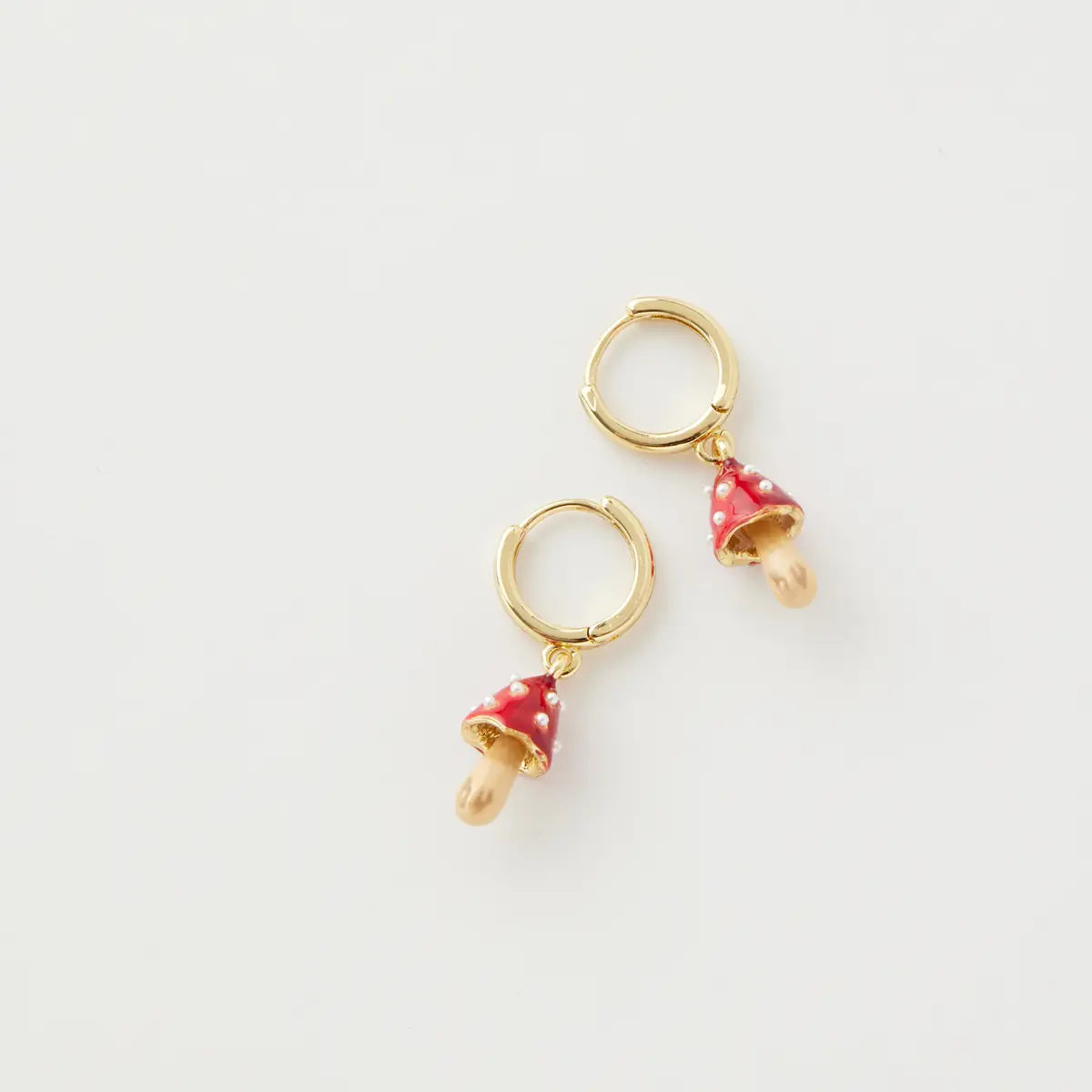 Boucles d’oreilles Fable England – Champignons rouges émaillés en plaqué or
