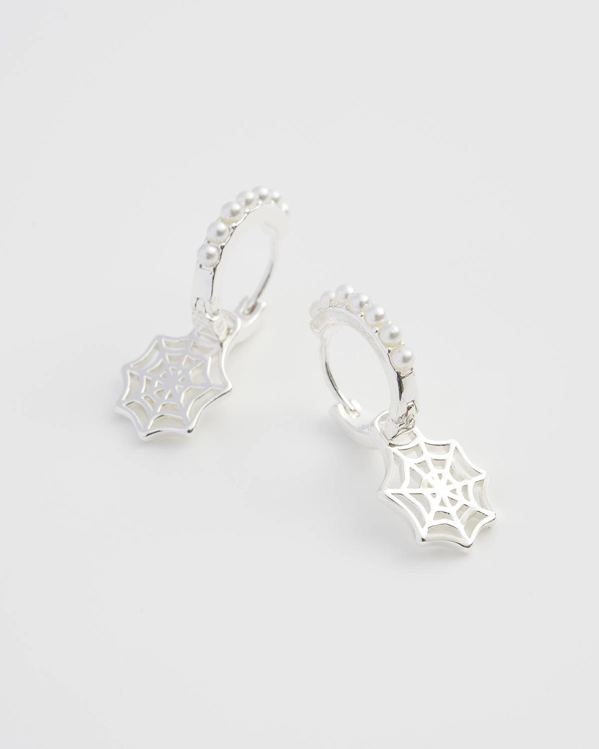 Boucles d’oreilles Fable England – Créoles plaqué argent et pendentif toile d’araignée