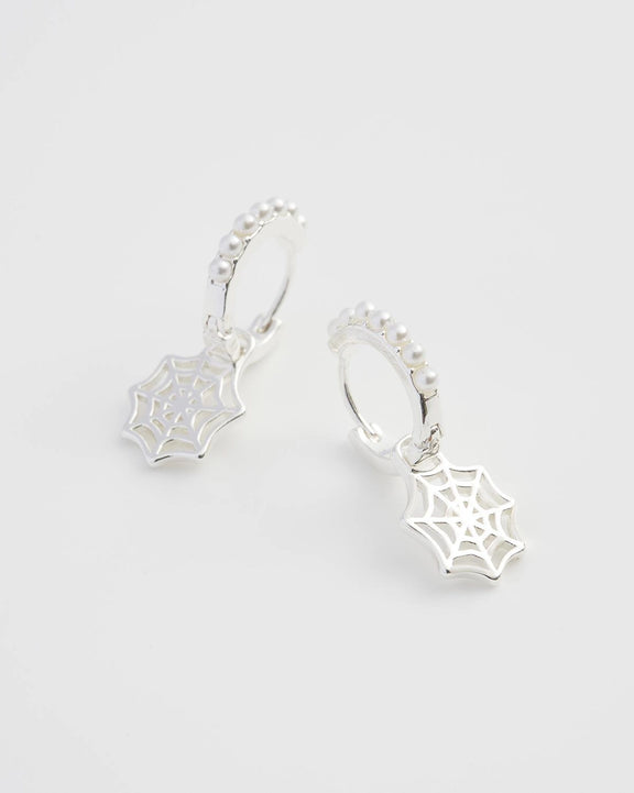 Affirmez votre style avec ces boucles d'oreilles Fable England en plaqué argent , inspirées de la délicatesse des toiles d'araignée. Chaque créole est ornée de mini perles nacrées finement intégrées, d'où pend un charme discret en forme de toile stylisée , pour un look à la fois mystérieux, raffiné et féminin .