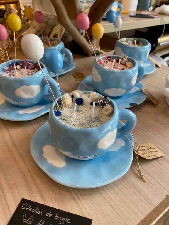 • Présentée dans une tasse en céramique bleue avec nuages + soucoupe assortie