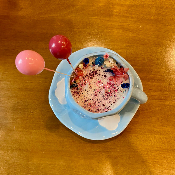 Plongez dans la poésie d'un voyage aérien avec cette bougie exclusive, coulée artisanalement dans une grande tasse en céramique ornée de nuages et accompagnée de sa soucoupe assortie. Les ballons décoratifs apportent une touche féerique et festive, rappelant l'évasion et les rêves d'enfance.