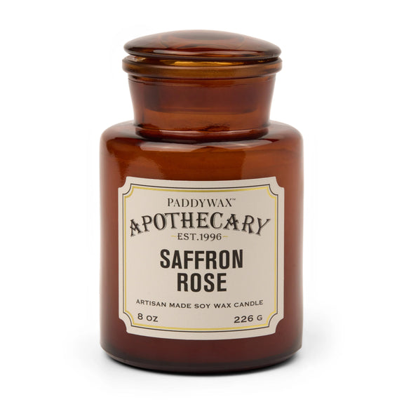 Bougie Parfumée Apothicaire Safran & Rose 226 g – Verre Ambré Vintage