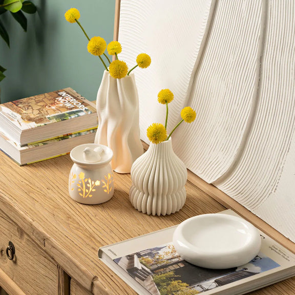 Apportez une touche de douceur et d’élégance à votre intérieur avec ce superbe brûleur à huile et fondants en céramique blanche. Son design ajouré, décoré de motifs floraux, laisse passer la lumière de la bougie chauffe-plat pour créer une ambiance chaleureuse et apaisante.