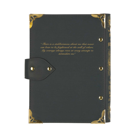 Célébrez l’élégance intemporelle d’Orgueil et Préjugés avec ce carnet classeur en cuir vegan inspiré de l’édition originale de 1813. Sa couverture vert profond reprend l’esthétique classique ornée d’une plume de paon dorée raffinée, évoquant tout le charme de la littérature anglaise.