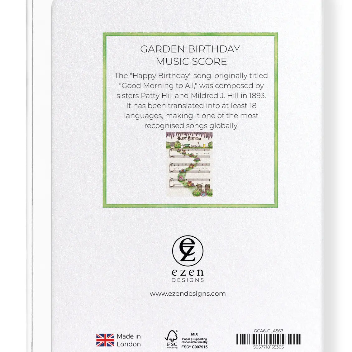 Au verso, une anecdote historique vient enrichir l’attention portée au destinataire : vous y apprendrez que la chanson « Happy Birthday » a été composée par les sœurs Hill en 1893 et traduite dans au moins 18 langues à travers le monde.