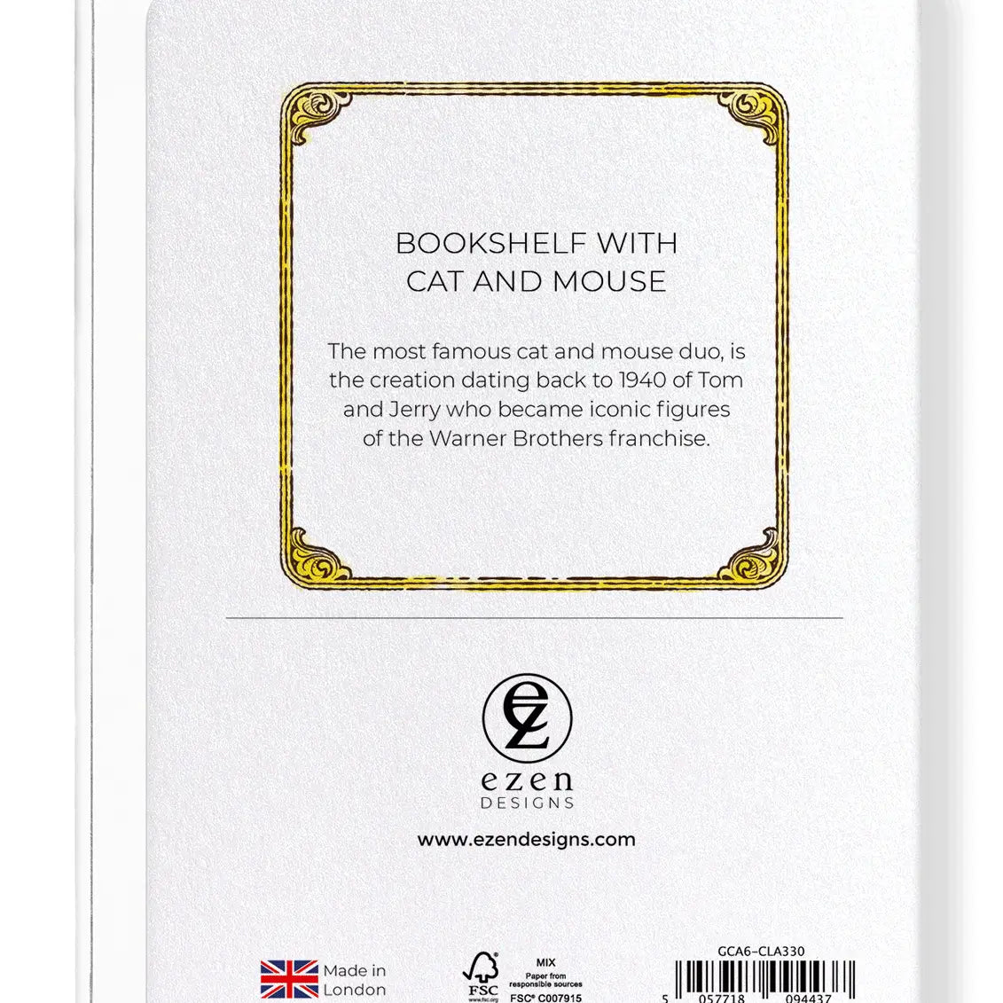 L’illustration délicate mêle les plaisirs de la lecture, la douceur d’un intérieur soigné et l’humour discret d’un face-à-face entre deux compagnons inattendus. Une carte idéale à offrir aux amoureux de livres, de chats ou d’ambiance cocooning. Au verso, une anecdote amusante évoque la création du célèbre duo Tom et Jerry, né en 1940.