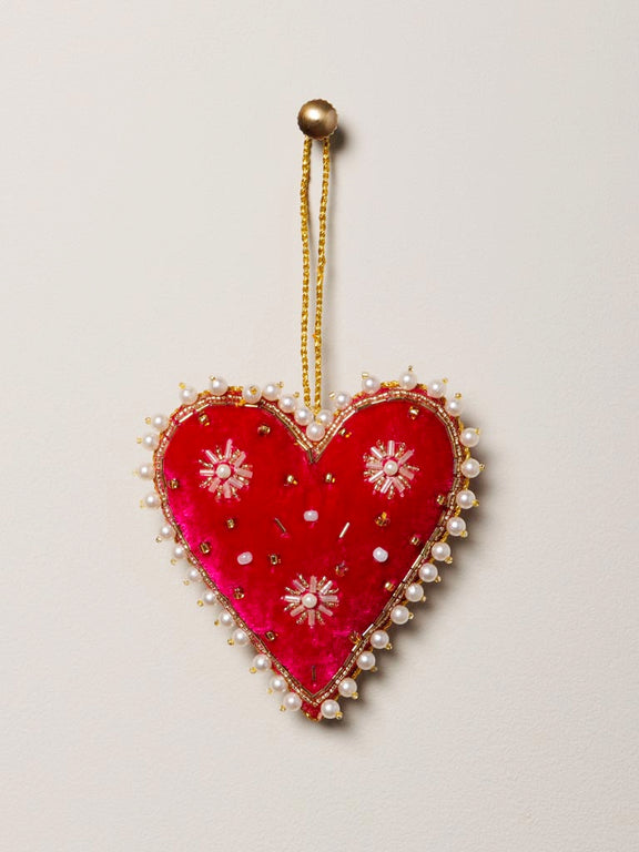 Cœur Suspension Velours Rouge – Brodé de Perles