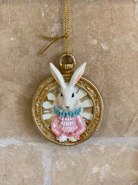 Décoration à suspendre – Lapin d’Alice au Pays des Merveilles avec horloge dorée (7 cm)