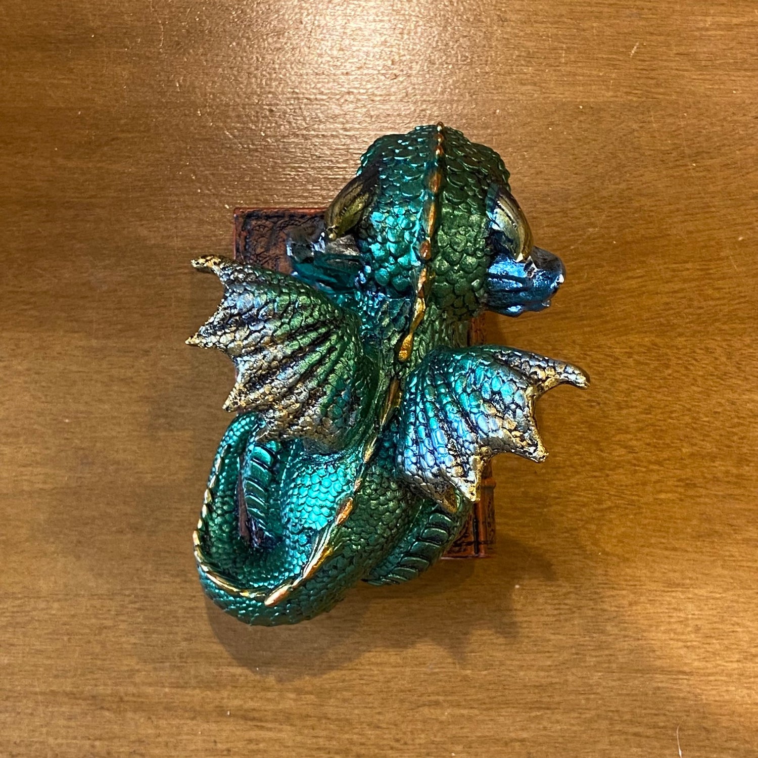 Figurine Dragon Vert « Where Dragons Dream » – Dragon endormi sur grimoire