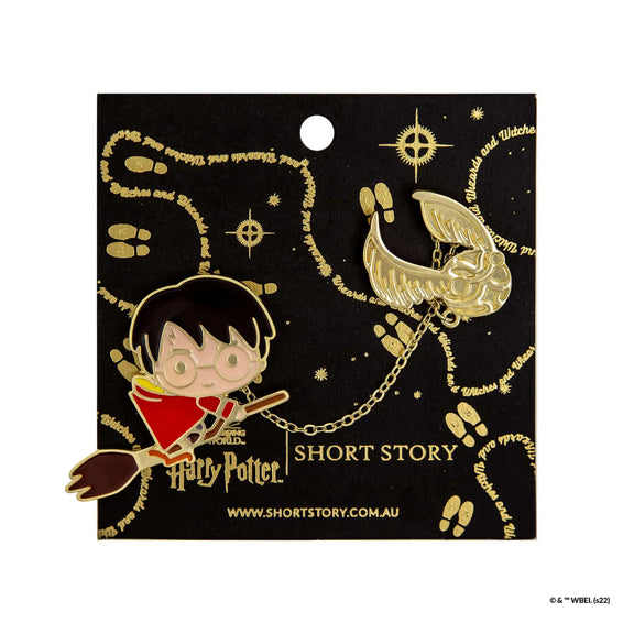 Duo de Pin’s Harry Potter – Harry & Vif d’or avec chaîne