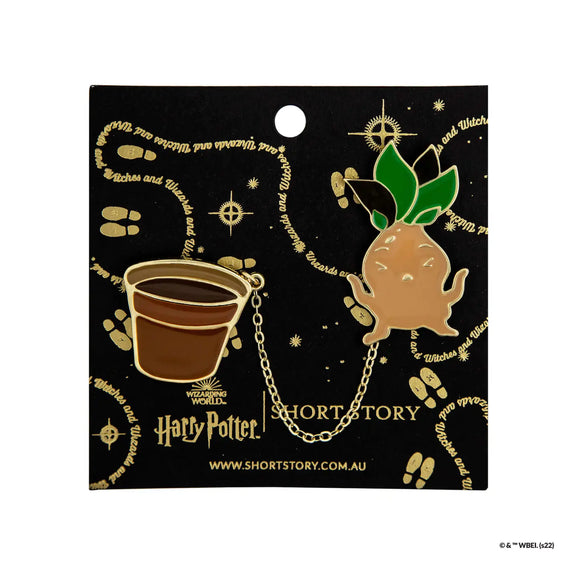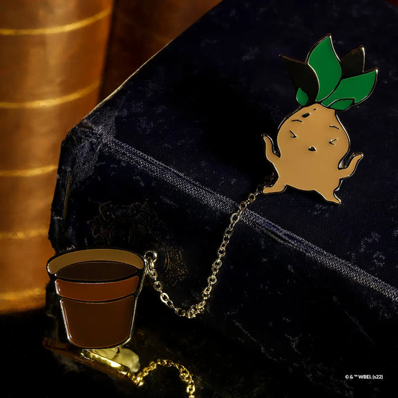 Ce pin’s double collector met à l'honneur l’une des plantes magiques les plus emblématiques de l’univers Harry Potter : la Mandragore. Reliés par une fine chaîne dorée, le petit pot de terre et la Mandragore semblent tout droit sortis d’un cours de botanique à Poudlard.