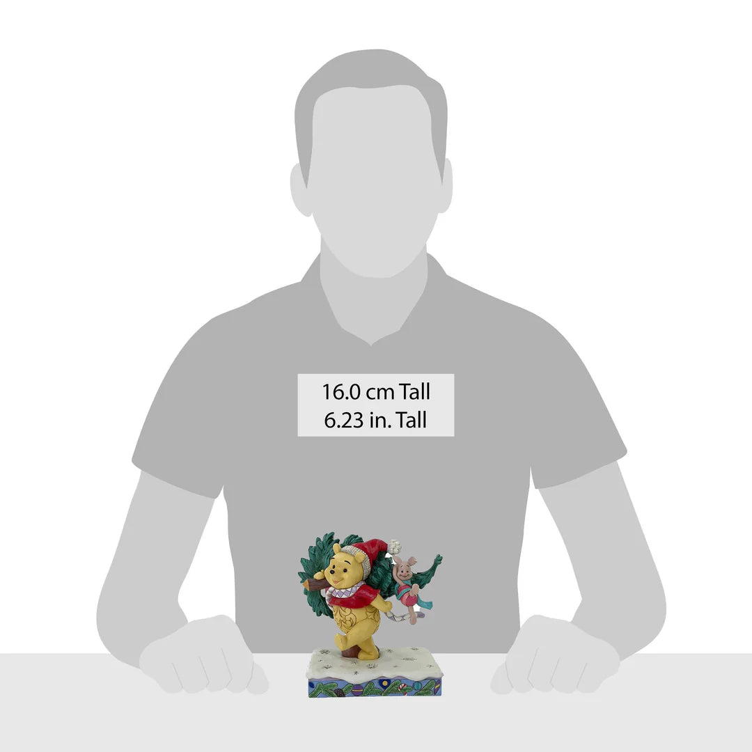 L’esprit des fêtes souffle sur la Forêt des Rêves Bleus avec cette magnifique figurine Disney Traditions par Jim Shore, mettant en scène Winnie l’Ourson et Porcinet en pleine aventure hivernale. Coiffé de son bonnet rouge, Winnie transporte un sapin sur son dos, tandis que Porcinet, plein d’entrain, s’accroche joyeusement à la branche.