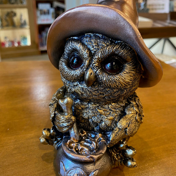 Figurine Hibou Alchimiste – Effet cuivre patiné