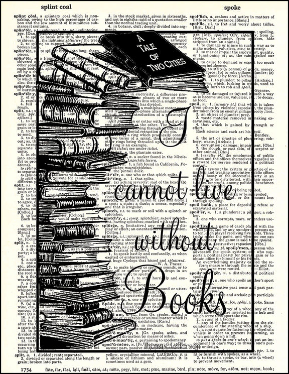 Affiche Vintage – "I cannot live without books" sur page de dictionnaire anglais