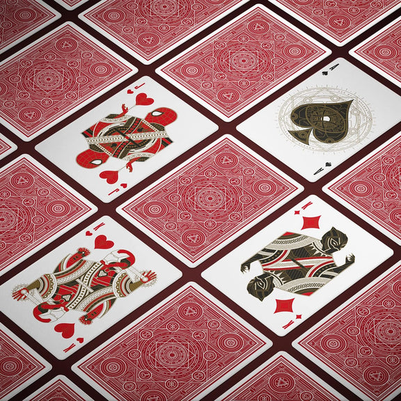 Le design élégant, inspiré des costumes et symboles iconiques de chaque personnage, s’étend des figures royales aux jokers, pour une immersion complète dans l’esthétique Marvel. L’étui est embossé avec des dorures et motifs en relief, pour un rendu ultra collector.