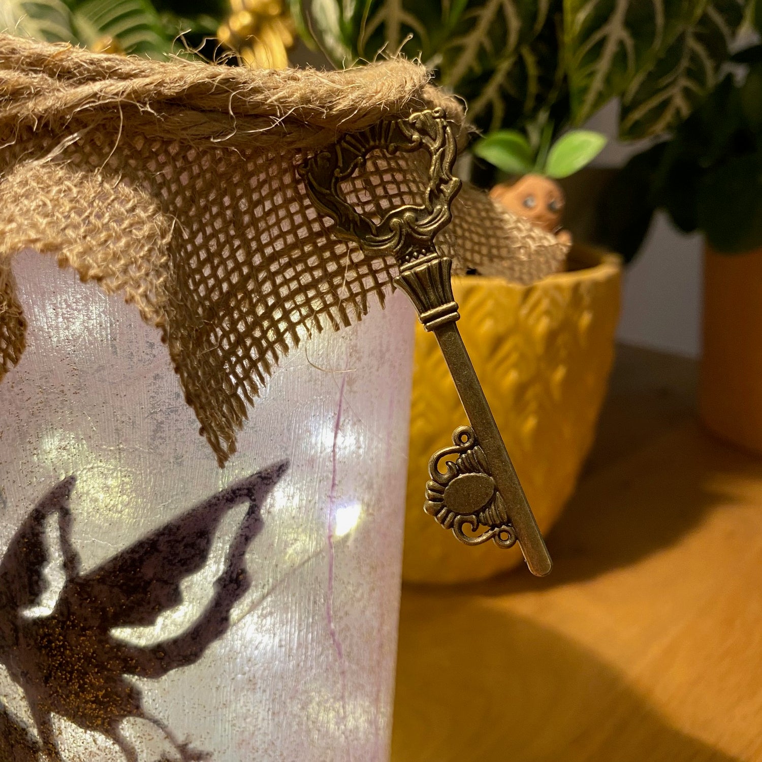 Lanterne artisanale - Fée rose - Fiole rose et clef à l'ancienne