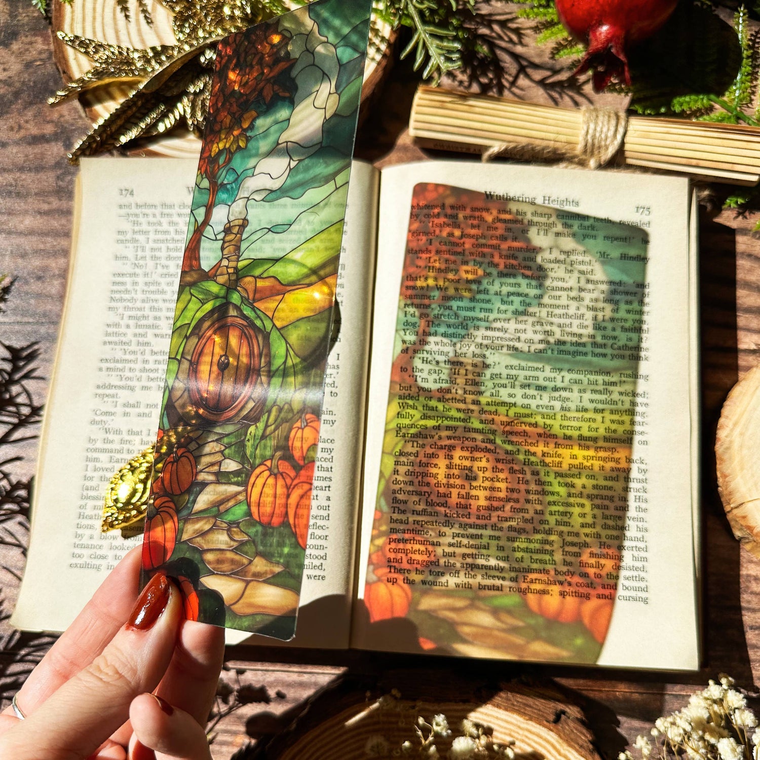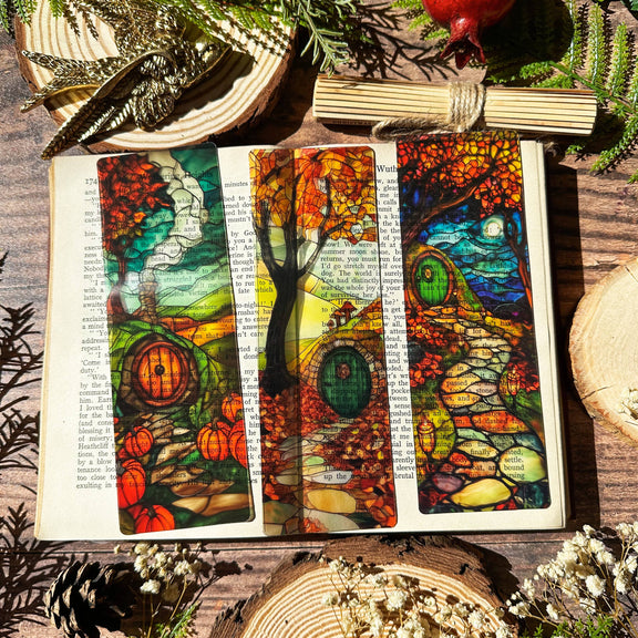 Marque-page vitrail – Maison ronde et citrouilles – Collection Sonnet & Fable