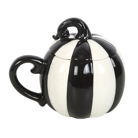Mug Citrouille Rayé Noir et Blanc avec Couvercle