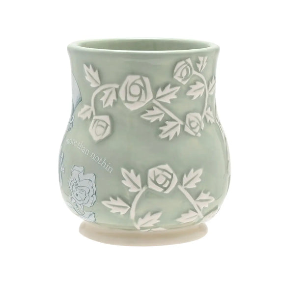 Conçu en céramique avec une finition émaillée brillante, ce mug présente des détails raffinés comme les roses en relief et la silhouette d’Alice gravée au dos. Sa forme généreuse et confortable en fait un choix idéal pour les amateurs de contes enchantés et de déco inspirée de Disney.