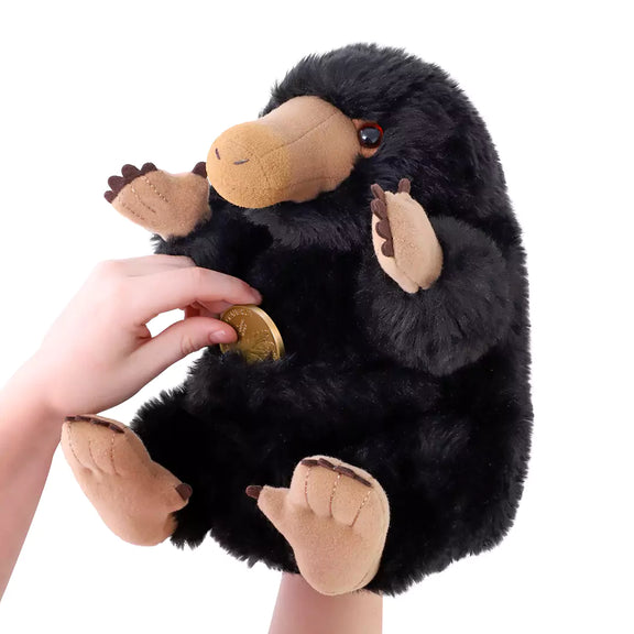 Craquez pour cette adorable peluche interactive du Niffleur , inspirée de l'univers magique des Animaux Fantastiques. Connue pour sa passion irrésistible pour tout ce qui brille, cette petite créature au pelage noir soyeux tient une pièce dorée entre ses pattes et pousse différents fils lorsqu'on la manipule.