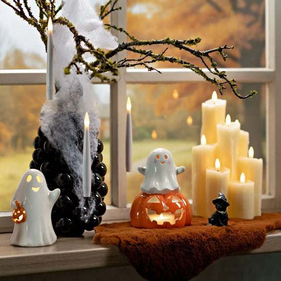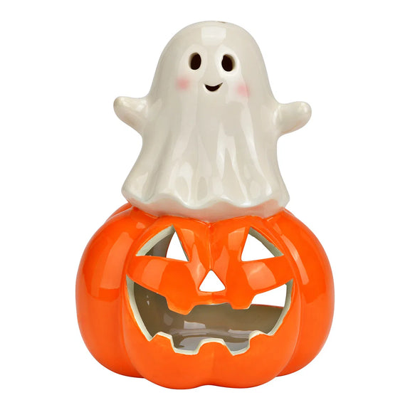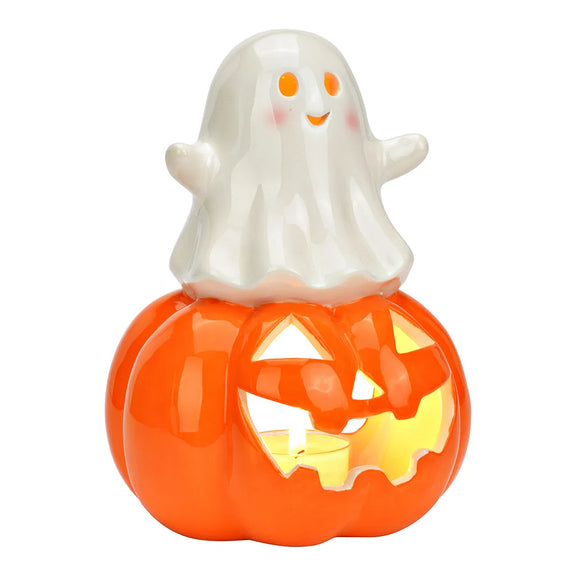 Photophore Halloween en céramique – Citrouille et Fantôme