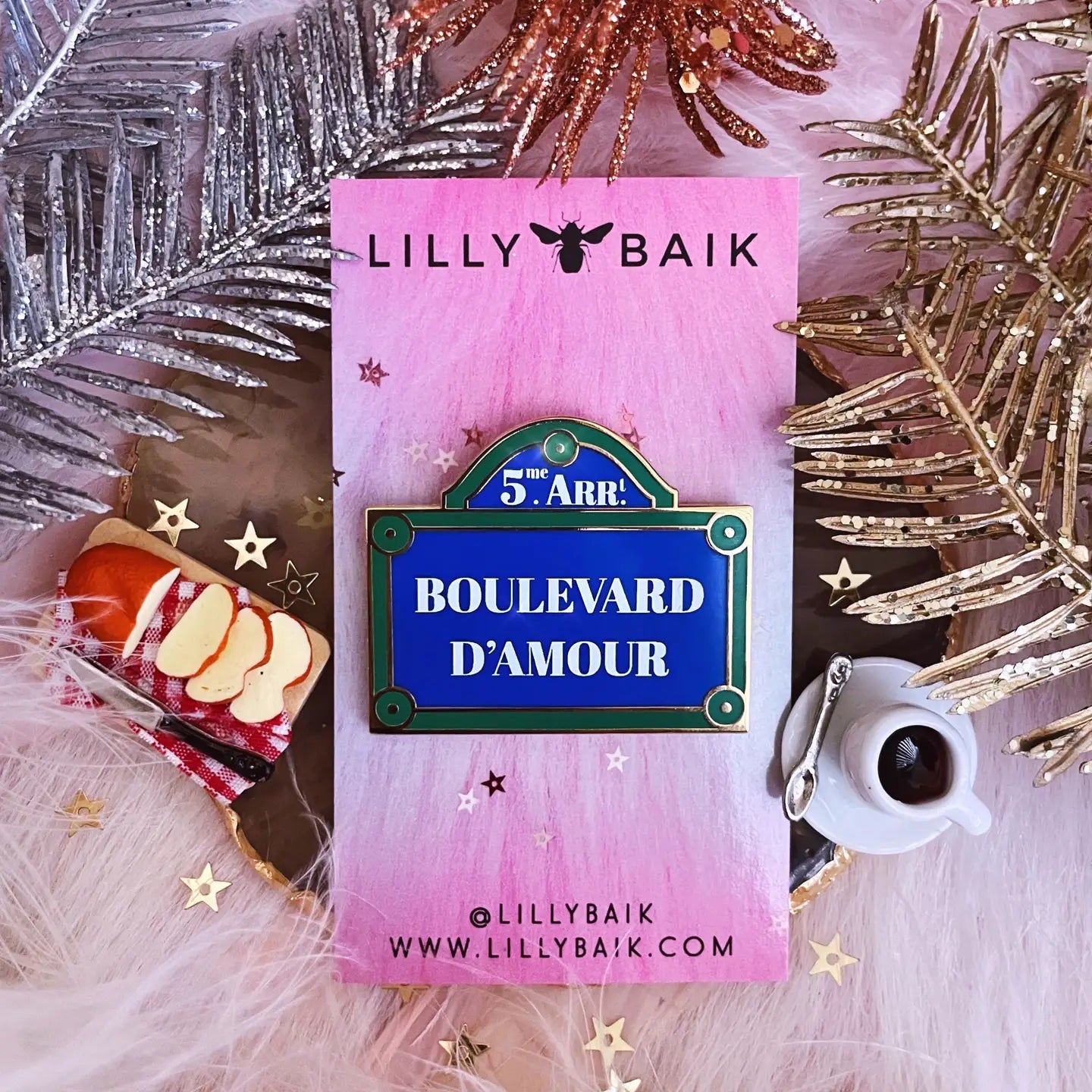 Affichez vos sentiments avec élégance grâce à ce pin’s émaillé « Boulevard d’Amour », inspiré des plaques de rues parisiennes emblématiques. Créé par Lilly Baik, ce bijou plein de charme évoque le romantisme à la française dans un format coloré et raffiné.