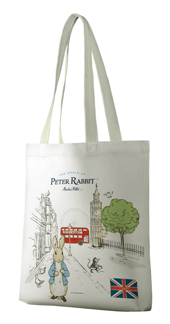 Emportez un brin de poésie britannique dans votre quotidien avec ce sac fourre-tout Peter Rabbit sur le thème de Londres. Entièrement fabriqué en coton 100 % recyclé, il représente Peter Rabbit dans les rues de la capitale anglaise, devant Big Ben et un bus rouge. Léger et pratique, il est parfait pour vos courses, vos balades ou vos affaires de tous les jours.