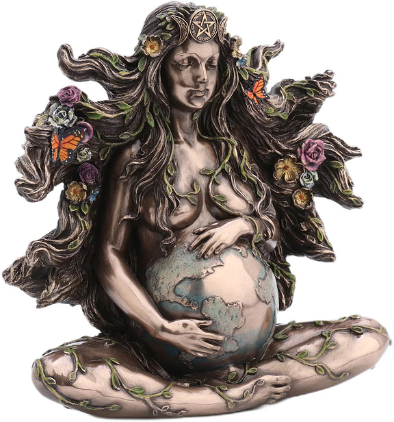 Statuette Gaia – Déesse Mère Terre effet bronze avec papillons et fleurs – Veronese Design